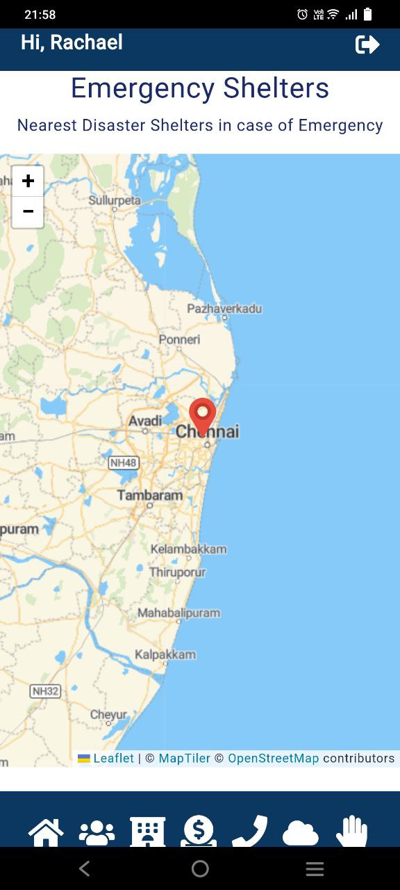 ✅ Provides a map of nearby emergency shelters that users can go to during a disaster