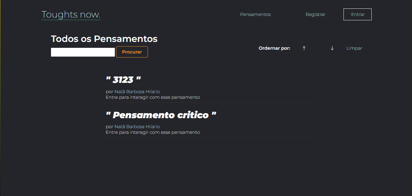 Esse sem duvidas foi um dos meus maiores projetos envolvendo Node.JS, foi aqui que aprendi a utilizar o squelize me aprofundar com conceitos do handlebars e me familiariazar com a arquitetura MVC. Além também de varios desafios que tive que enfrentar pra finalizar o projeto que me ajudaram a me tornar o profissional de hoje.
