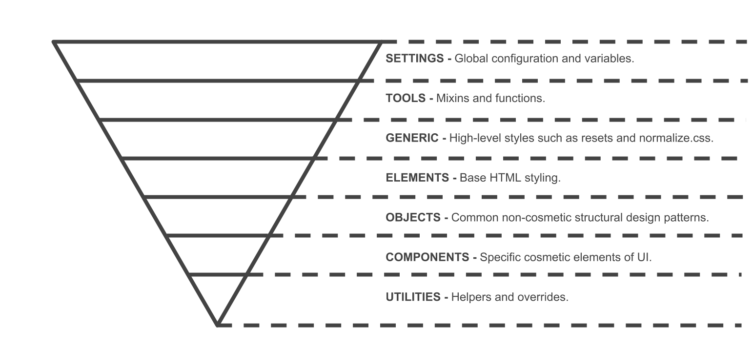 - ITCSS architecture for style structure. If you're not familiar with ITCSS, it's recommended to watch this presentation by Harry Roberts (@csswizardry) to get inspired.