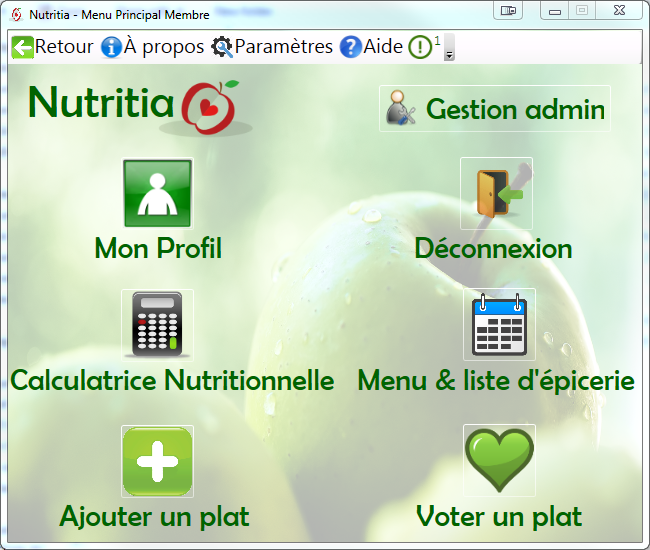 Menu principal une fois connecté.
