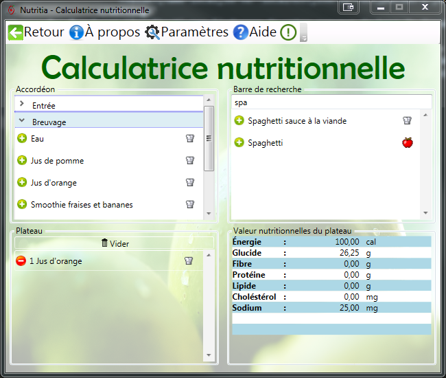 Calculatrice nutritionnelle.