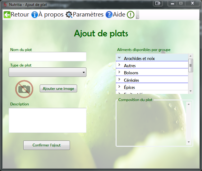 Ajout d'un plat par un utilisateur.