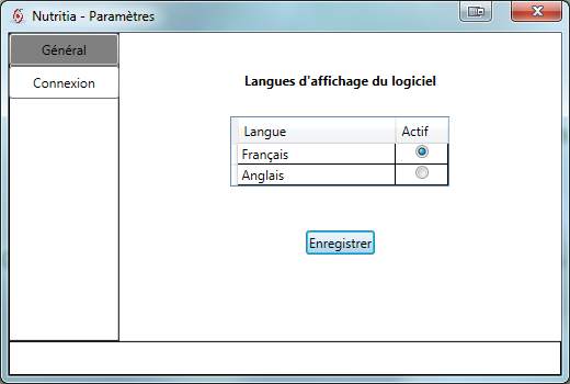 Dans le dossier contenant l'exécutable Nutritia.exe, modifier le fichier Nutritia.exe.config.