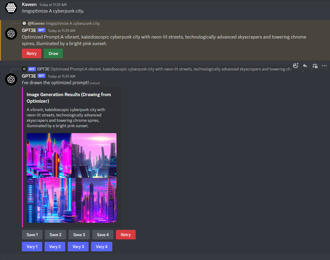 !draw <prompt>! It even supports multiple image qualities, multiple images, creating image variants, retrying, and saving images. -