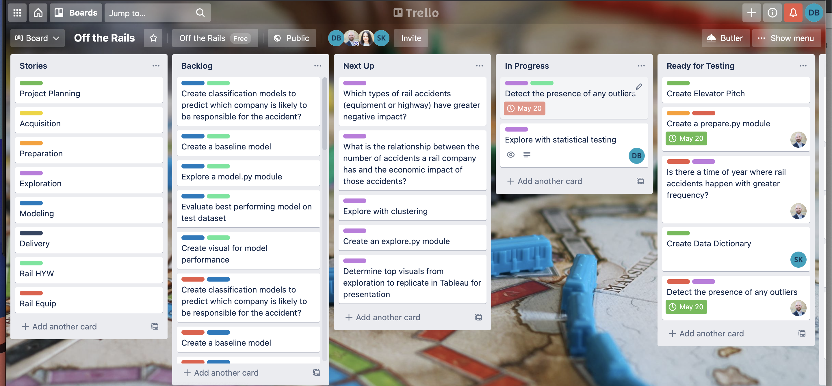 A link to the Trello board below can be found at https://trello.com/b/msJXyeEv/off-the-rails