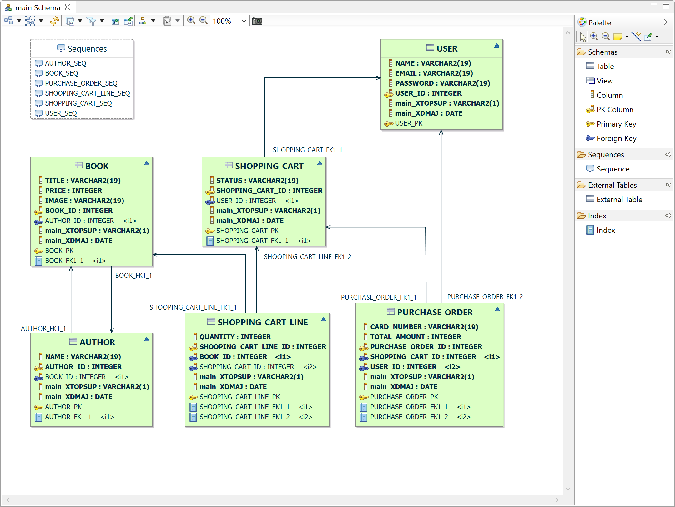 Database Designer est composé d’un éditeur de modèles MPD (Modèle Physique de Données) afin de définir un schéma de base de données (Oracle, PostgreSQL, H2, MariaDB, MySQL, SQL Server).