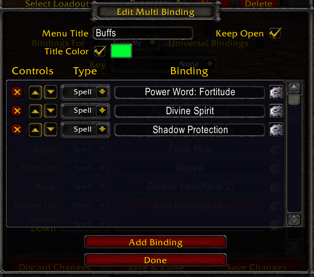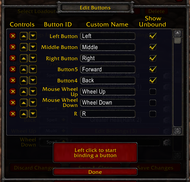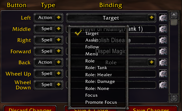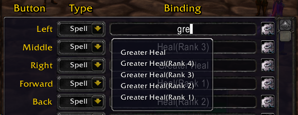 - Bind mouse clicks, the mouse wheel, and keys to spells
