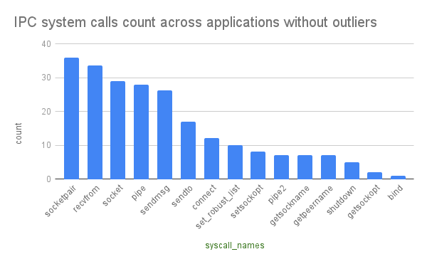 - no. of (IPC) system calls: number of syscall invocation / number of experiments