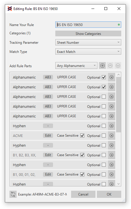 - Each separate part of the standard is hyphen separated, so be sure to add in the ready-made 'Hyphen' rule part between others.