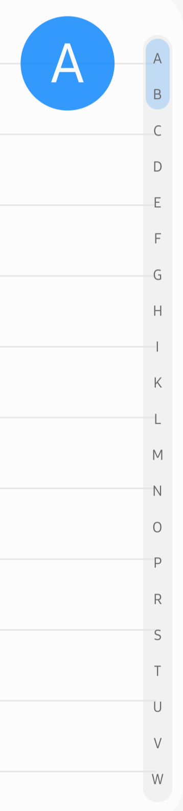 public void syncWithRecyclerView(RecyclerView recyclerView, List<String> itemNames, boolean useLetters)"Scroll-select" items in a list, like all oneui apps.