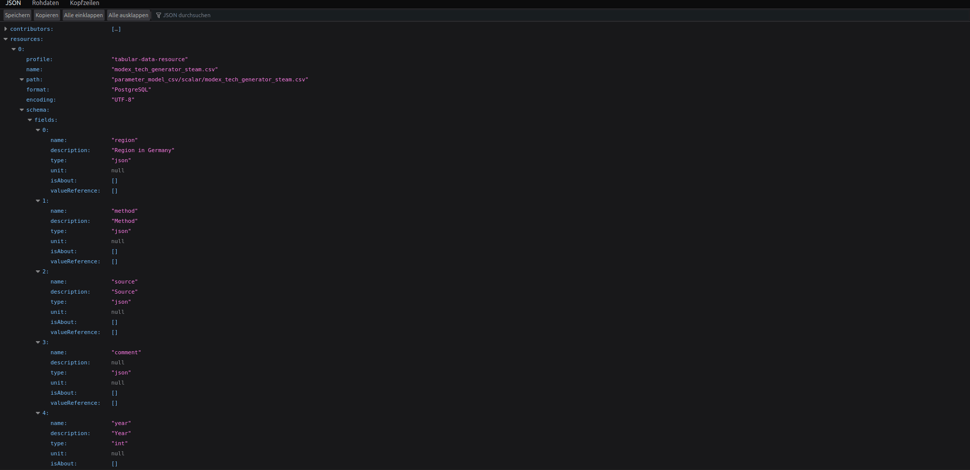 I personally find the usage of “name” a bit irritating as it is inconsistent. If it is not a necessity for further processing, I suggest making clear when a “name” refers to an arbitrary name from a dataset (like in Resource 1 or Field 1) and when it refers to an OEO-concept (like in IsAbout 1 or Value reference 1). |