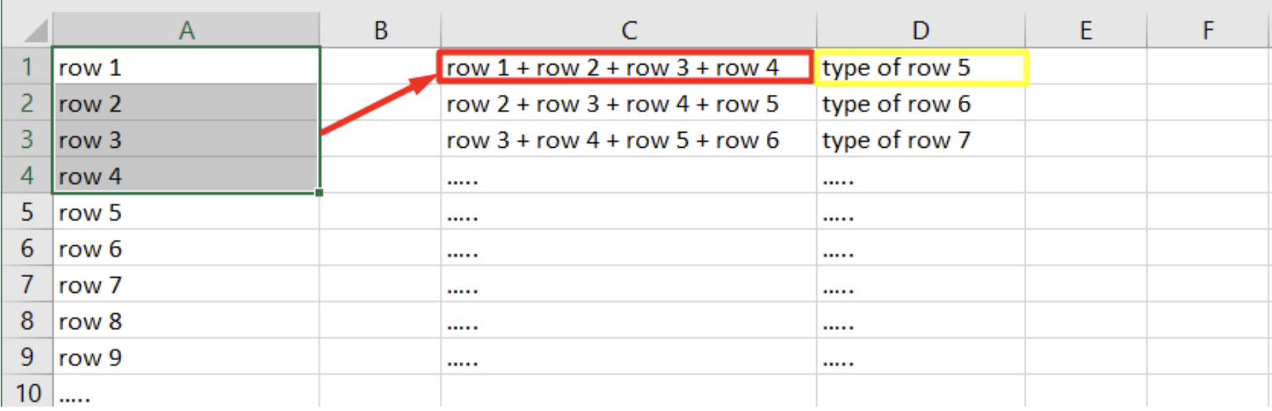 Each sample is 4 samples combined as one sample. Each label is the type of the consecutive sample of the 4 samples from the dataset. For Each Type we made a new model with multi-class as label. So each label could be one of the subtypes of each type.