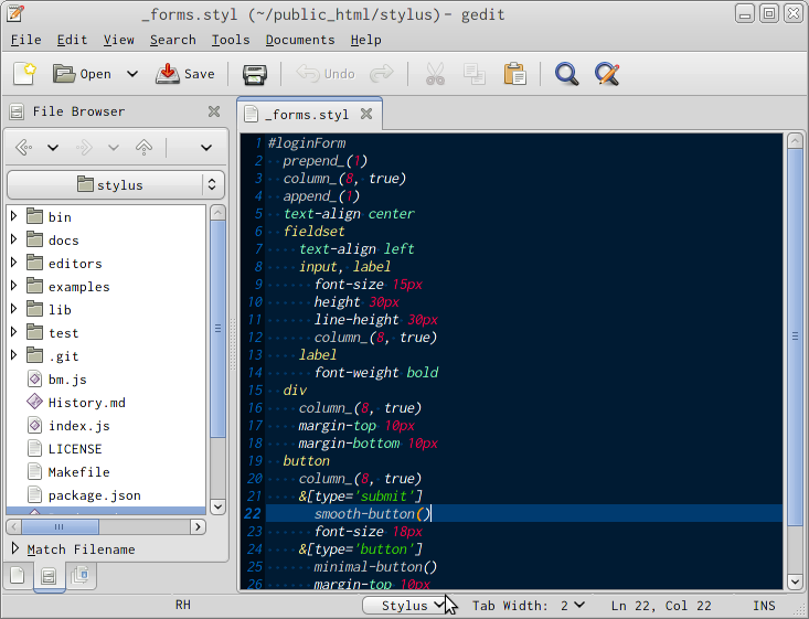 This is much more enjoyable than having gedit recognize your .styl files as Apache Confs!