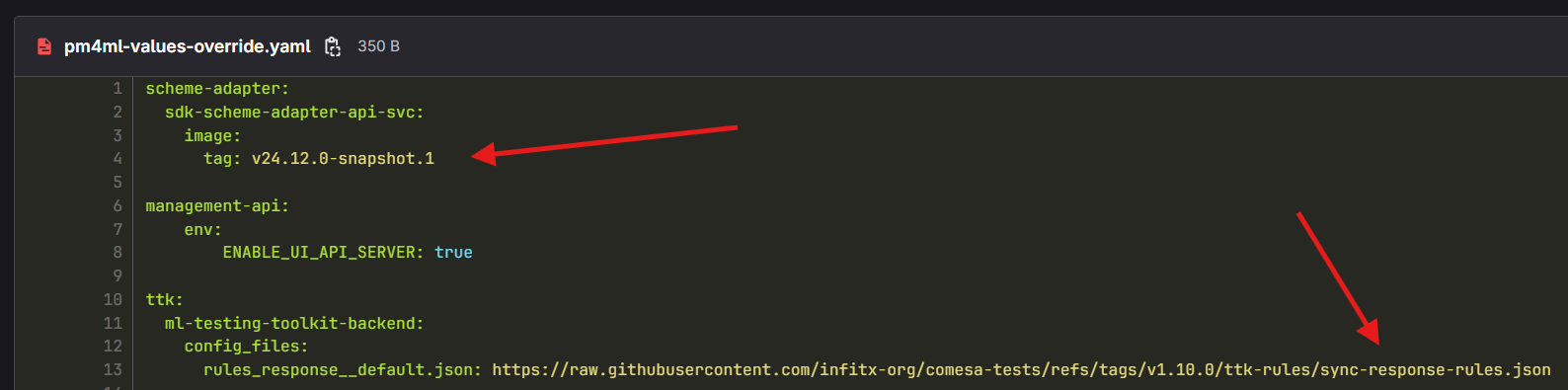 pm4ml-values-overrideincludes URL to the response rules. This URL is hard to maintain manually when upgrading, so it must be avoided or moved elsewhere (profile or addon)