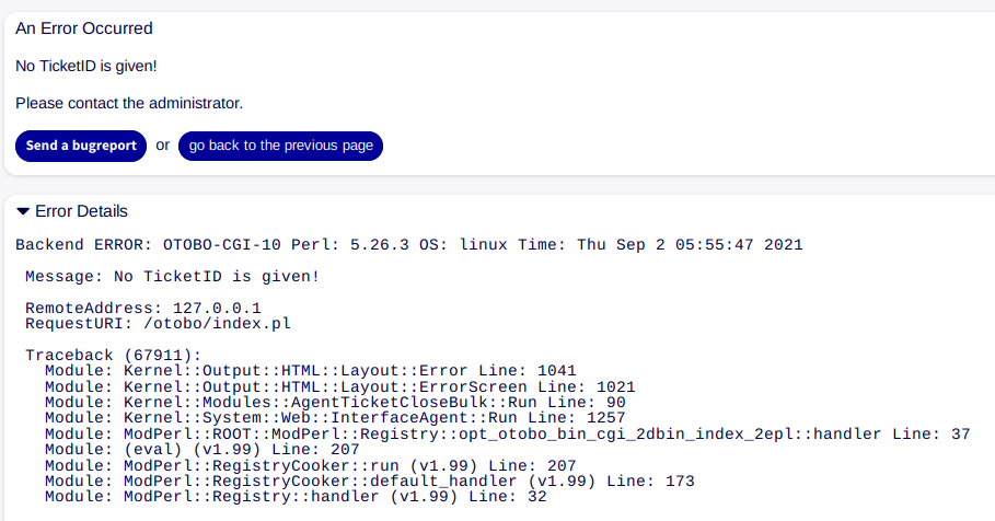 However closing any single ticket without selecting it with a checkbox doesn't work, and the error message appears that "No ticket ID is given". This only happens when using Large view where ticket preview is visible (so each ticket has its own QuickClose dropdown menu). I need to select the ticket with a checkbox and then QuickClose for a given ticket will work.
