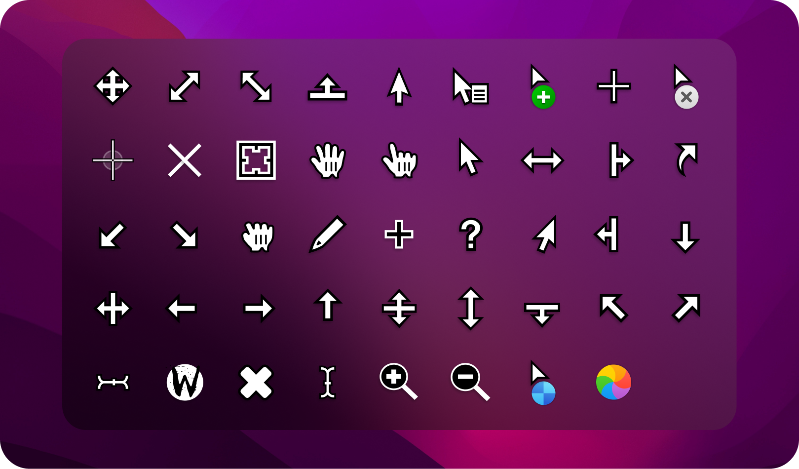 Enjoy macOS cursors for Windows and Linux with HiDPI Support .