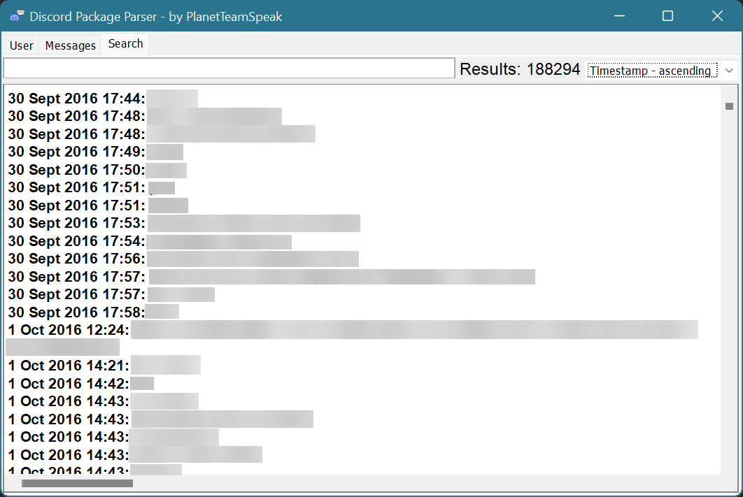 Discord sends a link to download the package to the e-mail address associated with your account, usually within a couple of days. - Then either put the package.zip file in the same folder as the Discord Package Parser jar file, or run the Discord Package Parser and then browse to the package.zip file, within a couple of seconds you should see a screen that shows you some general information and gives you the possibility to view a whole lot more.