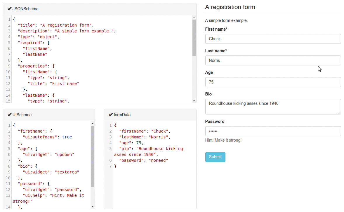 A simple React component capable of building HTML forms out of a JSON schema and using Bootstrap semantics by default.