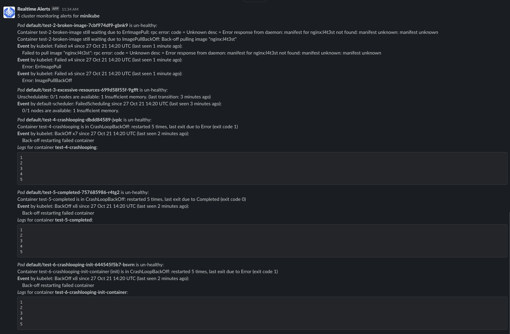 "Container test-4-crashlooping is in CrashLoopBackOff: restarted 5 times, last exit due to Error (exit code 1)"