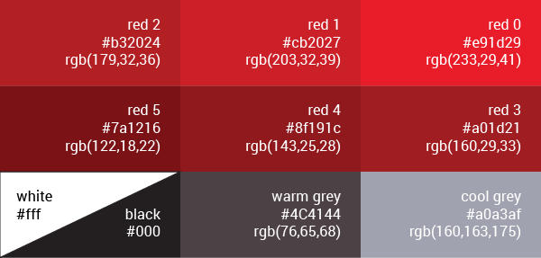 - red 2 #b32024 rgb(179,32,36); Pantone Solid Coated 7621 C