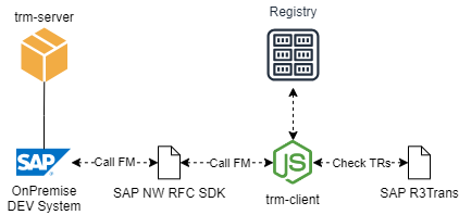 When a TRM Client (like trm-client) has to execute any of the functions of trm-server, it makes use of the SAP NW RFC SDK.