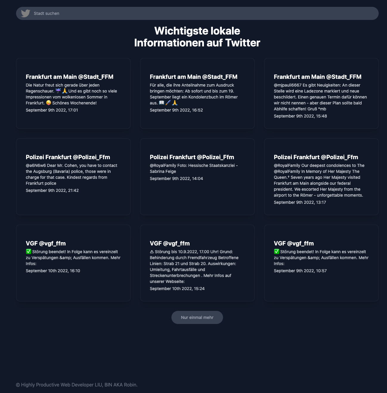 - users can click any information card to go to the original twitter for more details, pictures, or links.