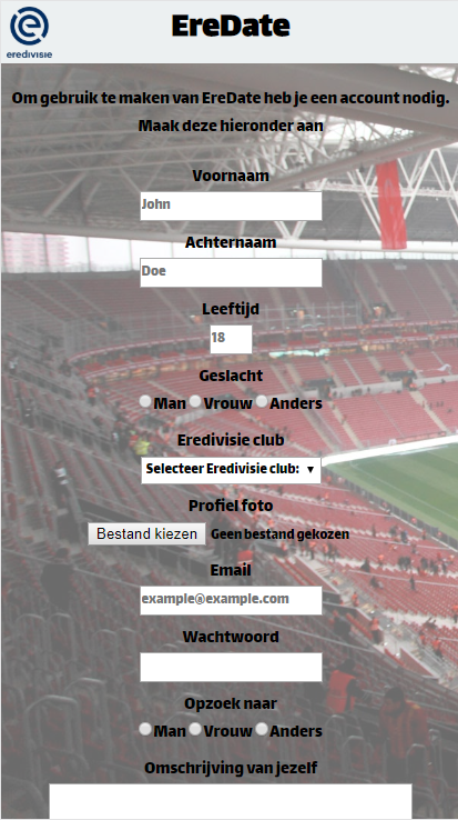 This is a project for my backend assesment and Project Tech. It it is a dynamic website using Git, Express, Node.js and MongoDB / Mongoose. This dating app is for users who support one of the 18 Eredivisie football clubs in the season 2019/2020.