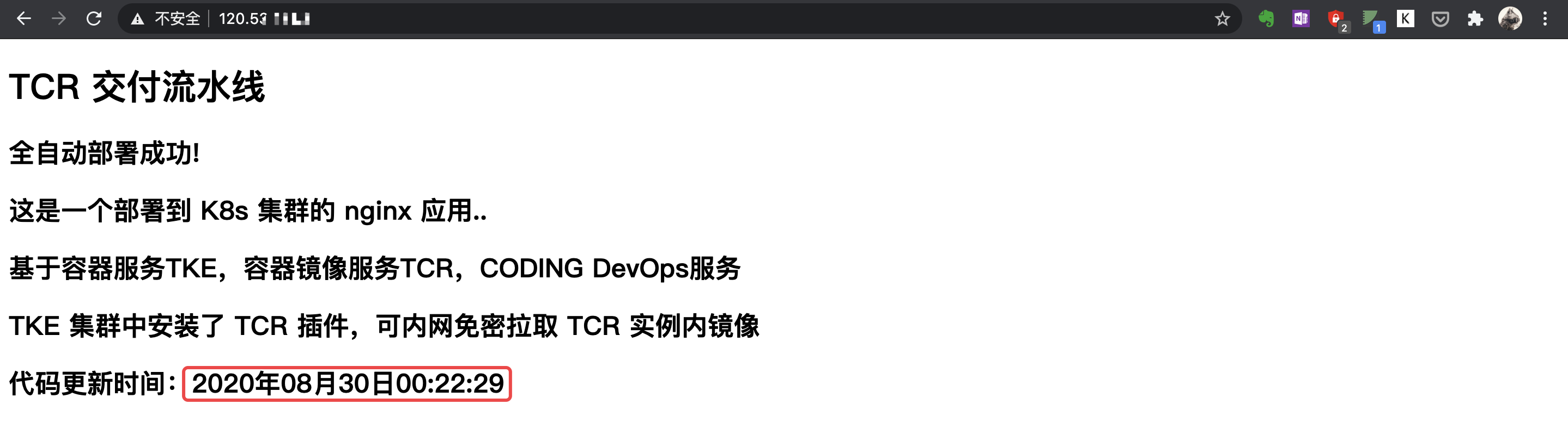 完成以上配置后,即可在更新应用代码后,自动触发镜像构建,推送及应用更新。