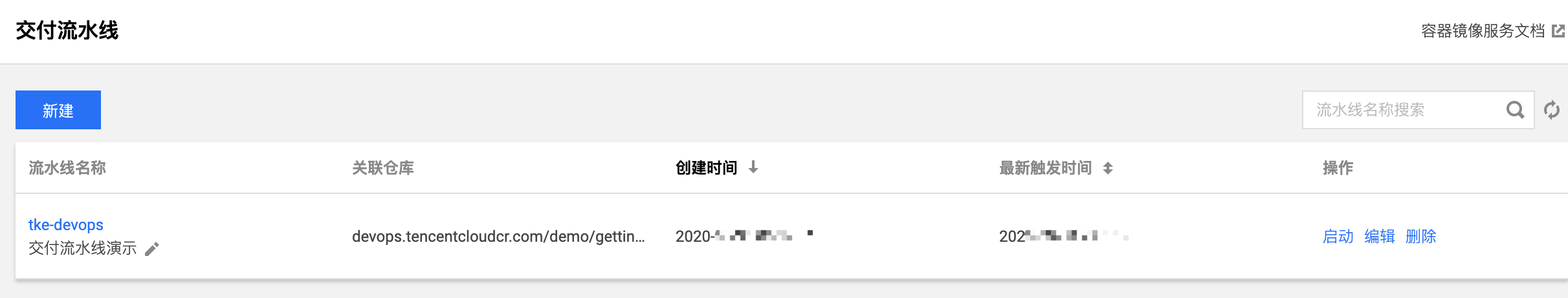完成以上配置后,可在“交付流水线” 列表页查看新建的流水线。如下图所示: