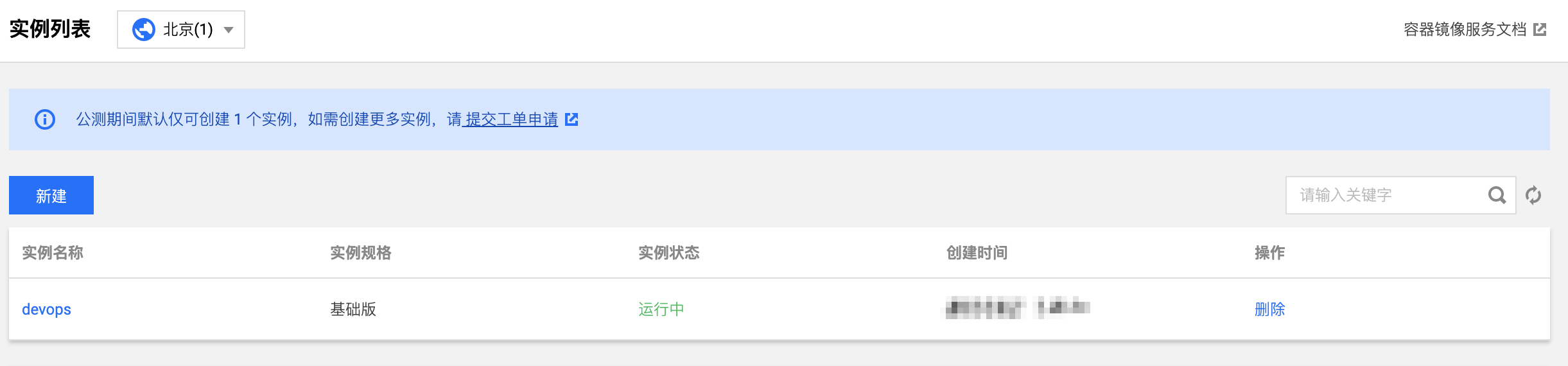 前往实例列表页面,新建企业版实例,详情请参见 创建企业版实例。创建成功即如下图所示: