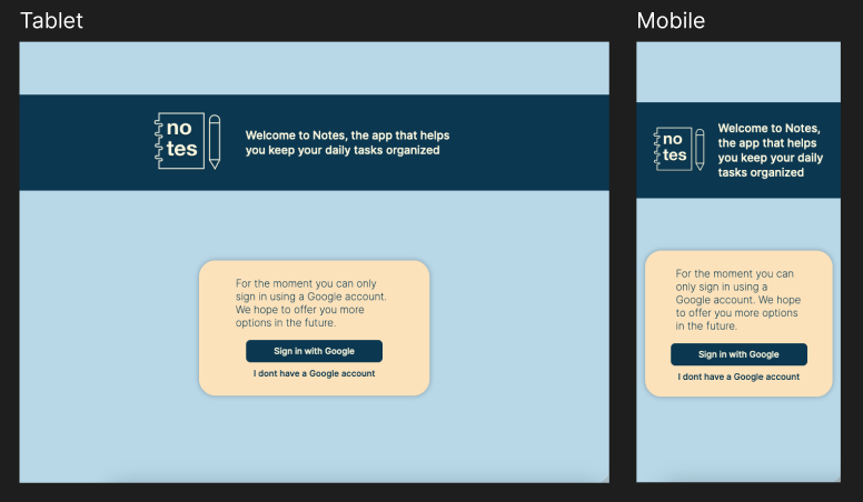 For the first user story, users need to access the Notes section by authenticating their account. In this first version of the project, I facilitated the authentication option with a Google account, using Firebase's "sign in with popup" function and hoping to expand to more options in the future.