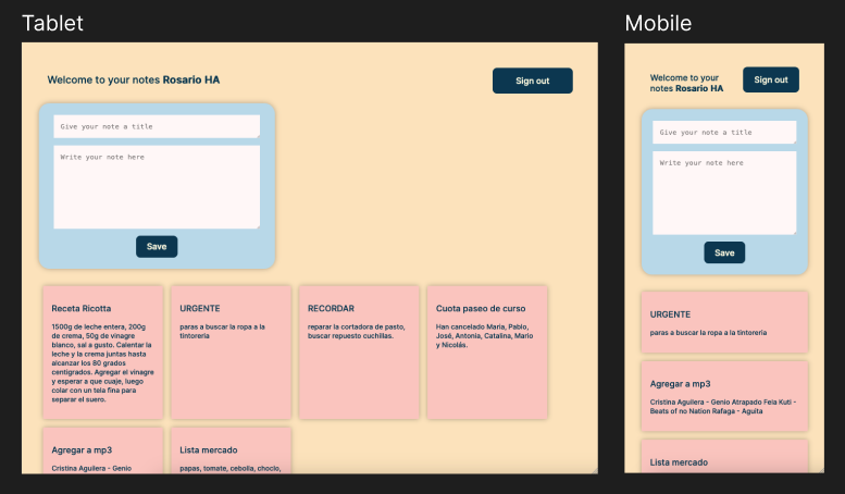 For this project, the challenge was to build a web application for taking notes that allows us to create, edit, delete, and consult them at any time. I used HTML, CSS, Javascript, Firebase and React to create a Single Page App that is also responsive, using a Mobile First approach.