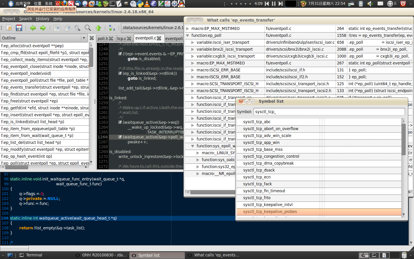 - Run cscope to create cross references on top source directory of an open source project