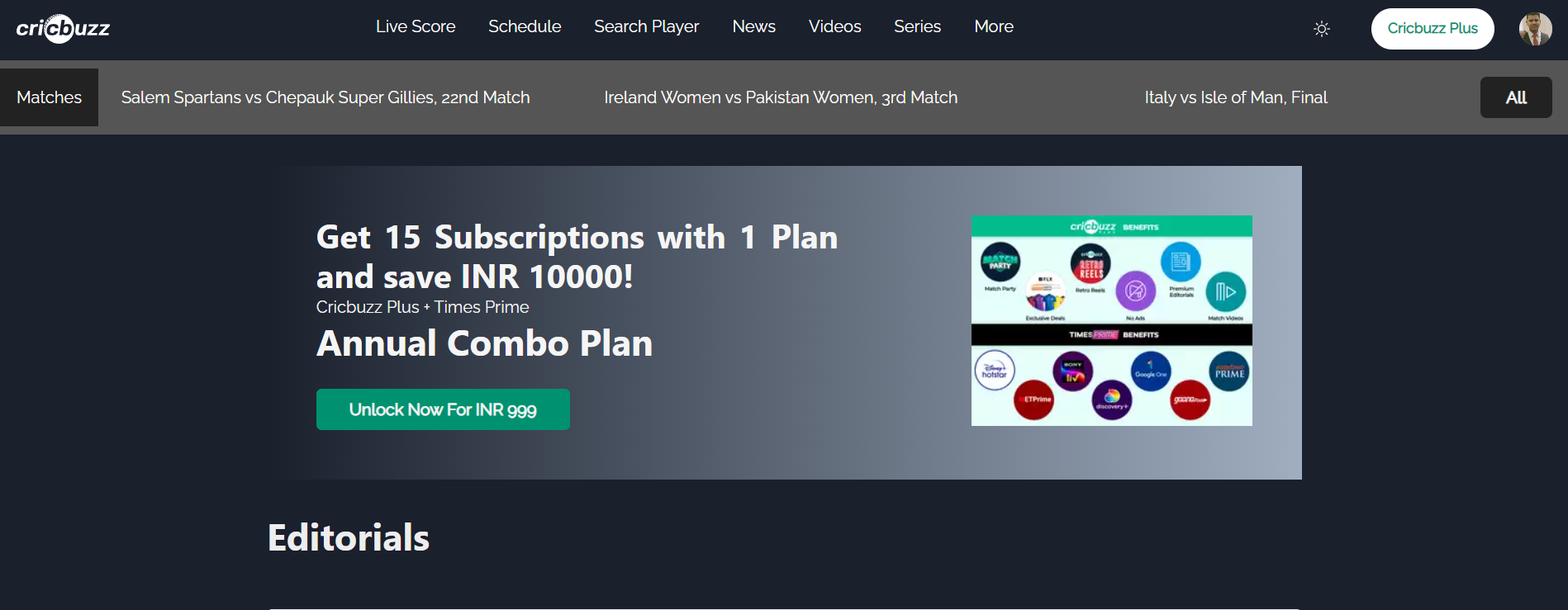 Cricbuzz is one of the most popular mobile apps for cricket news and scores in India.[4] The site was the seventh most searched for site in India in 2014.[5] The mobile app has over 100 million downloads as of February 2022 and the website is used by more than 50 million users worldwide, generating 2.6 billion page views in Jan 2015.