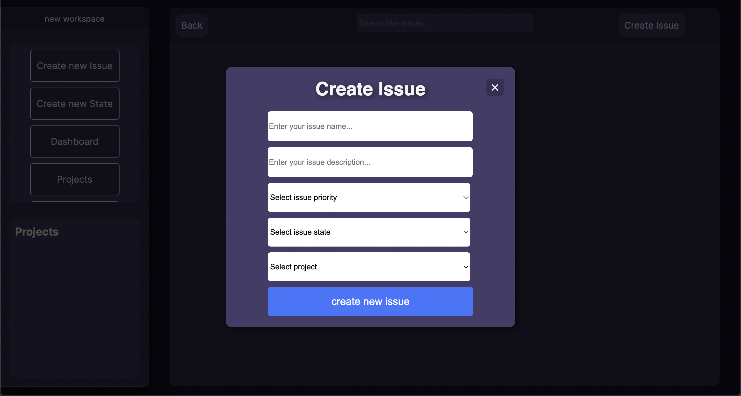 - Issues Page: there are different types of issues page (workspace issues, project issues, sprint issues), however the layout is the same