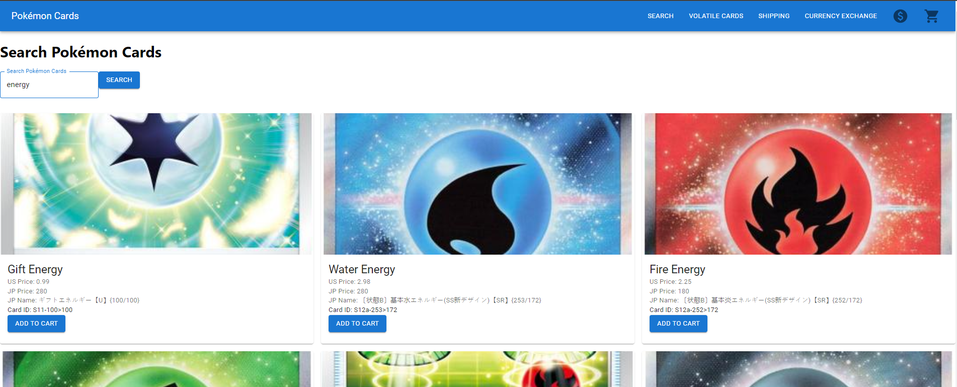 This repository contains a Pokemon application designed to track and compare the price differences between the Japan and US markets for Pokemon cards. This tool is especially useful for collectors and resellers looking to take advantage of price discrepancies across markets.