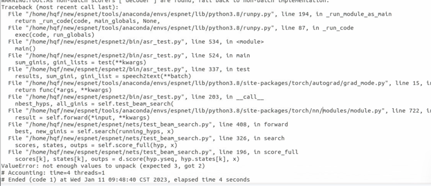 你好,我在使用命令sh test.sh --test_sets "test-orig" --need_decode true --orig_flag true --dataset "xxx" --stage 1 --stop_stage 4,解码an4数据集时出现了问题,无法解决,您是否重构了espnet中的某个文件?