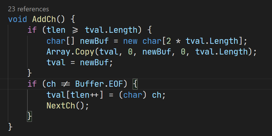 The generated function of the Scanner AddCh() downcasts the int ch where the current character is stored with UTF-32 encoding to a 16 bit char that expects UTF-16 encoding.