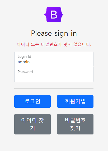 -아이디 및 비밀번호가 일치하지 않을시 오류메시지 보여주기