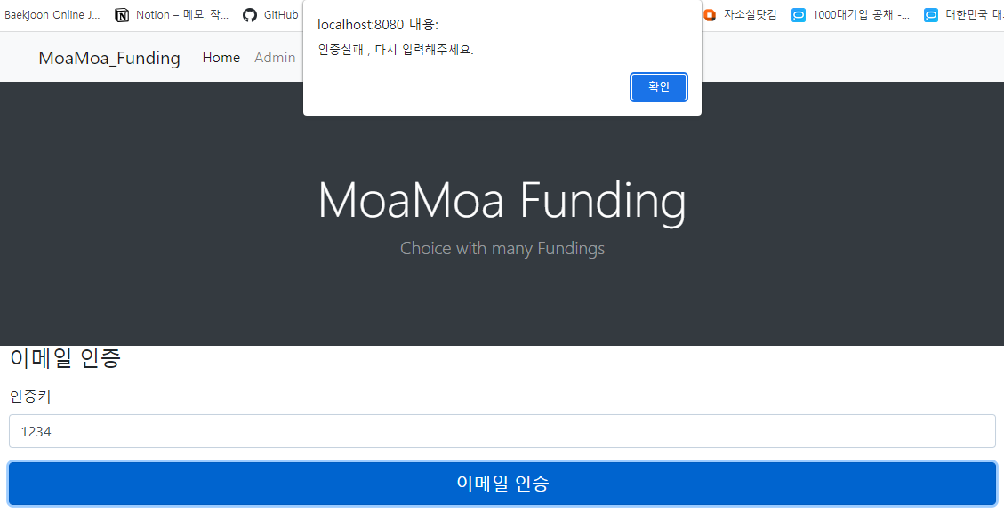 4-2. 회원가입후 인증 없이 로그인할시 ( 인증키 입력 페이지로 이동)