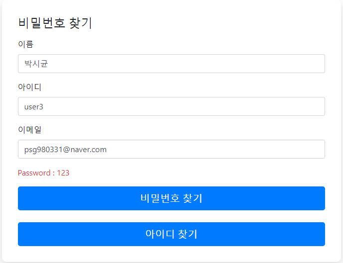 -이름+이메일+아이디를 입력하면 그 정보에 맞는 비밀번호를 찾아준다.