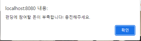 -회원은 펀딩에 참여하려면 펀딩금액 이상을 가지고 있어야한다. 소유금액이 펀딩금액에 미치지 않을시 오류메시지를 보여준다.