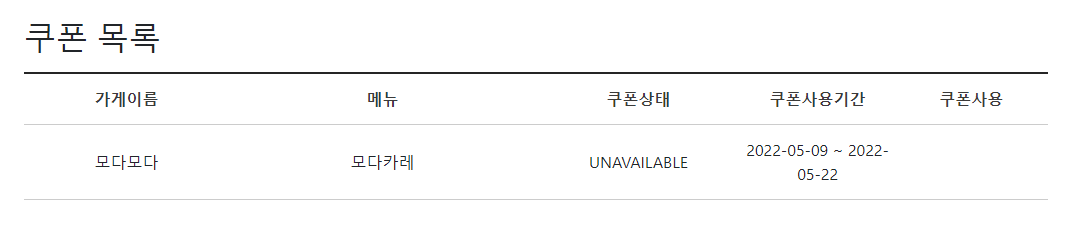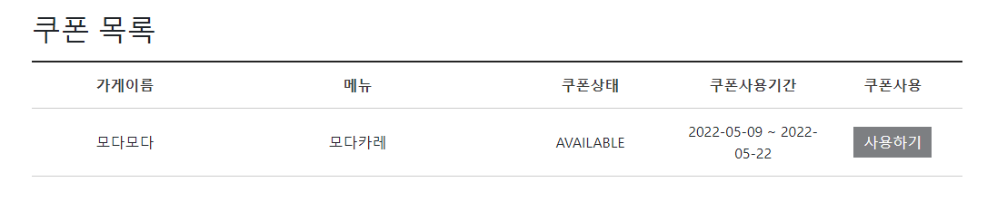 -쿠폰을 사용하기를 누르면 쿠폰을 더이상 사용할수 없어야 한다.