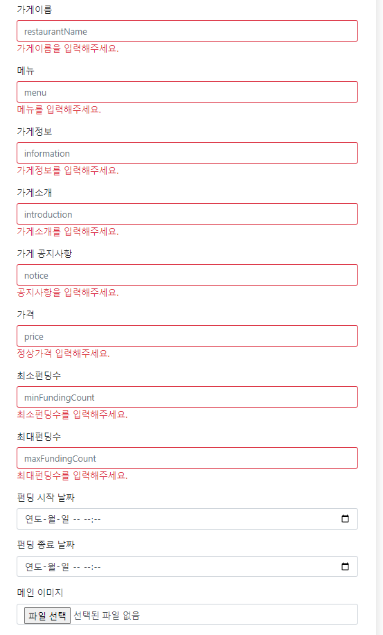 -로그인,회원가입,펀딩입력,공지사항 등 모든 입력등에서 유효성 검사