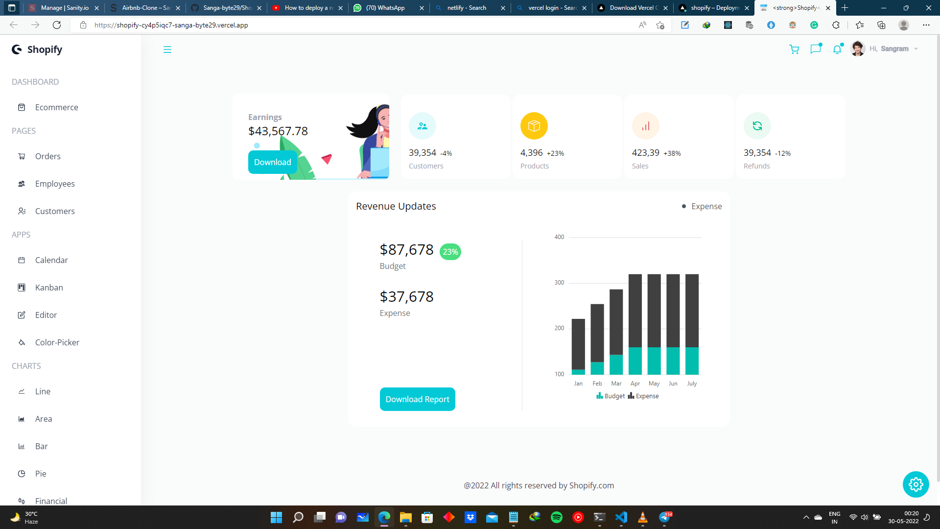 A fully functional Dashboard made with React JS and Syncfusion UI Components which is a quality level compoents used for business purposes Link is given here -> https://shopify-cy4p5iqc7-sanga-byte29.vercel.app