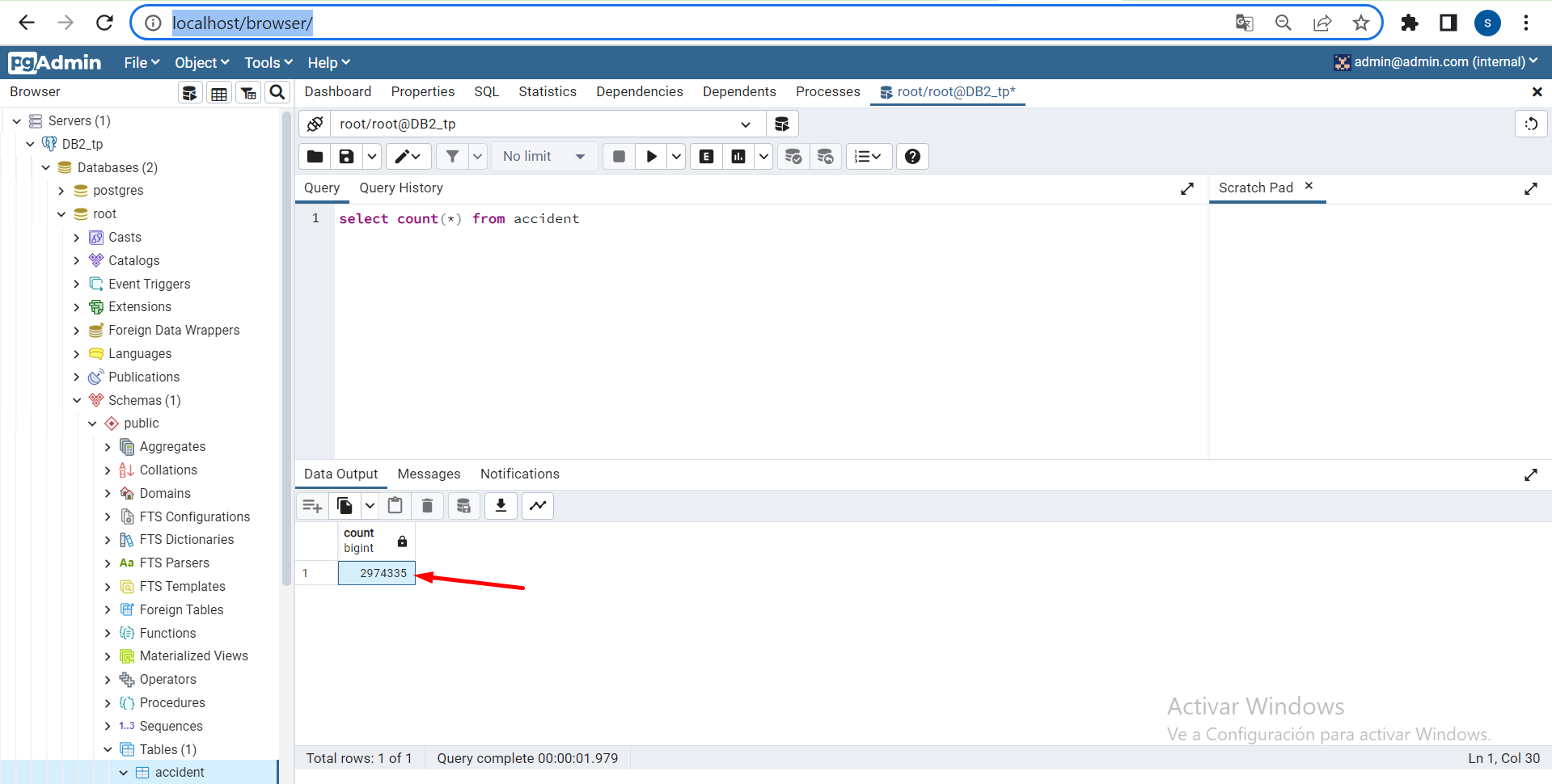 NOTA: Puede comprobar que finalizó la carga en cada contenedor haciendo uso de los visores de cada DB, corroborando que el total de filas en cada DB sea de 2974335.