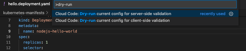 - Dry-run YAML Files: Perform a dry run of your configuration and check its validity using the newly added dry-run command (with either client-side or server-side validation). Dry-run evaluates the resource request without persisting objects to storage, and displays the validation result as a toast notification. To discover more commands to help with editing your configuration files, see the YAML editing guide.