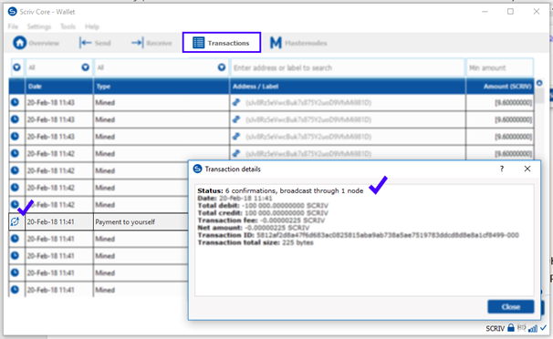 Wait for 6 network confirmations. You can check it by proceeding to “Transactions” tab and double-clicking on your transfer transaction. Wait for status to got 6+ confirmations, and