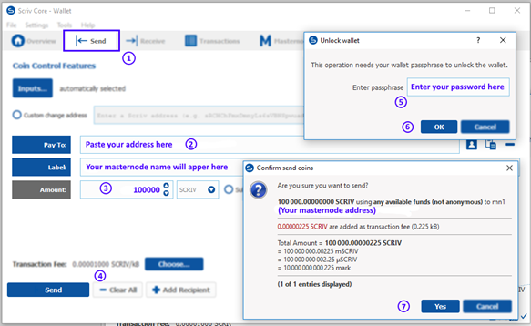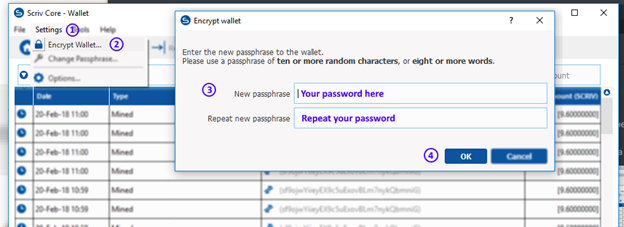 “Unlock wallet” window will appear -> Type your password -> Hit “OK”