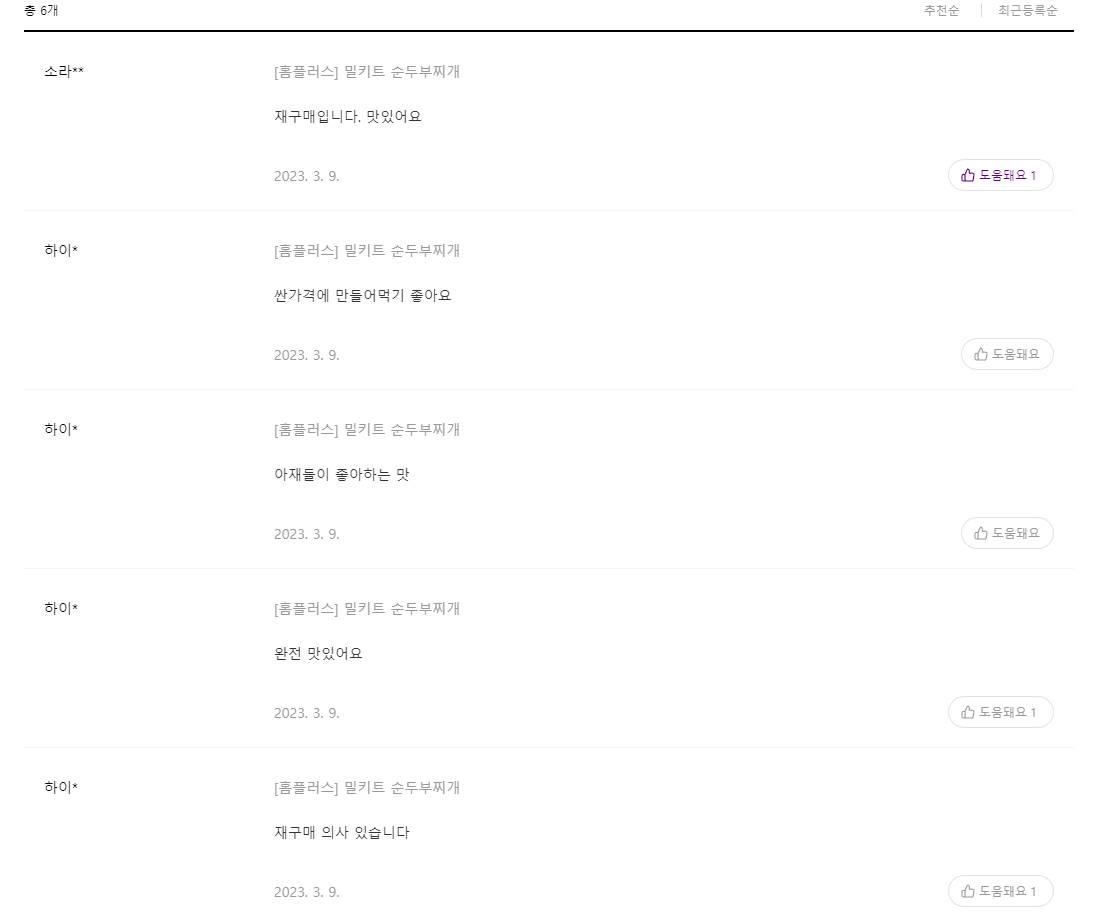 신규 리뷰 페이지와 베스트 리뷰페이지에는 3가지 정렬 기능이 있다. 기본적으로 각각 신규 리뷰순, 베스트 리뷰순이 있고, 공통으로 낮은 가격순, 높은 가격순으로 정렬이 가능합니다. 밑의 이미지를 보면 낮은 가격순으로 정렬된 모습을 볼 수 있습니다.